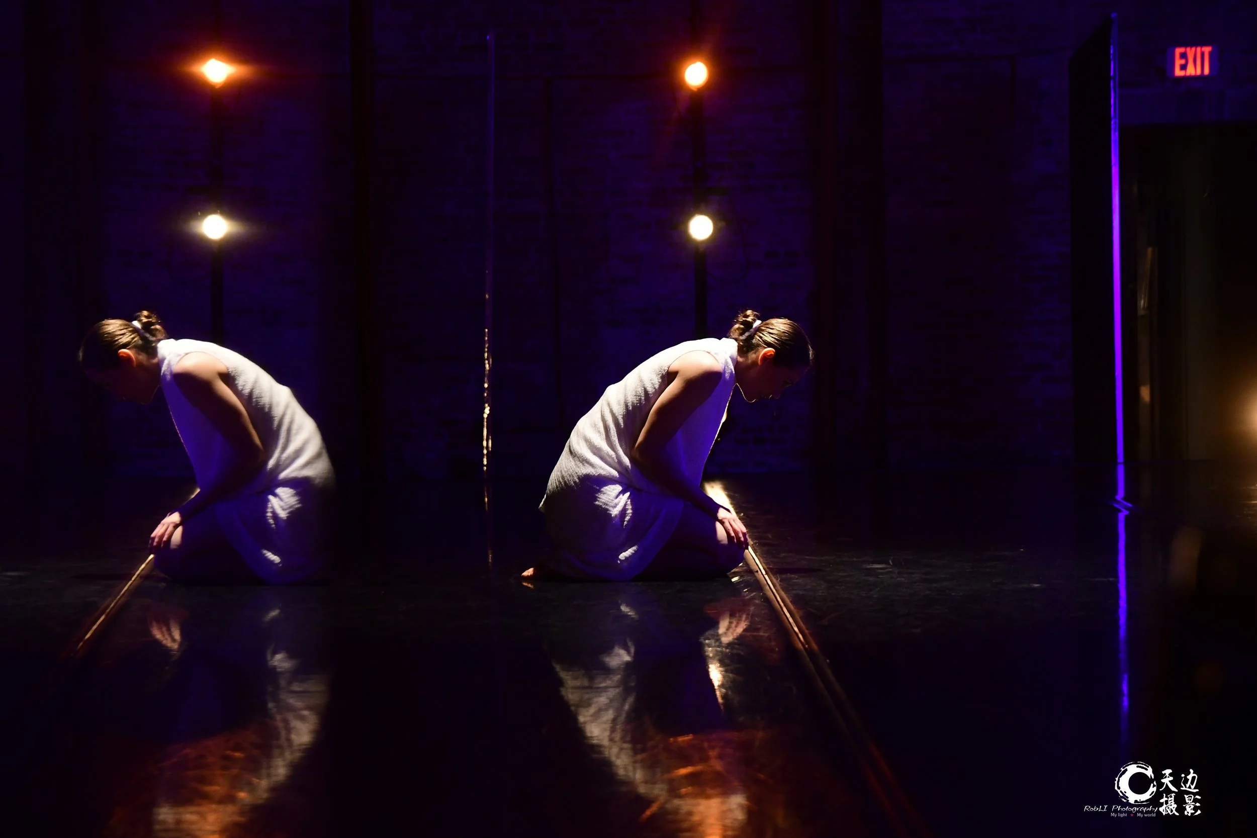 This chilling, “hair-raising” piece explores the many looks of female internal struggle, regret and the hope to find a peace of mind. Fully ridden with anxiety, the duet to artist Loli Tsan’s poem, Tous Les Dangers, depicts a dark reality, or perhaps just a memory of a haunting past. Is it real? A dream? And how many women are really present? When the scissors come out, there is no telling what they will do next…